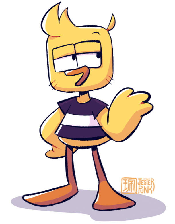 kicks is a happy go-lucky guy, with a very athletic and energetic life. he is often seen with his skateboard, which is quite proficient at using. his positive attitude renders him pretty invincible to the wild stuff that happens around him.despite his pretty normal appearance, kicks seems to be able to store an infinite amount of stuff inside his pouch.