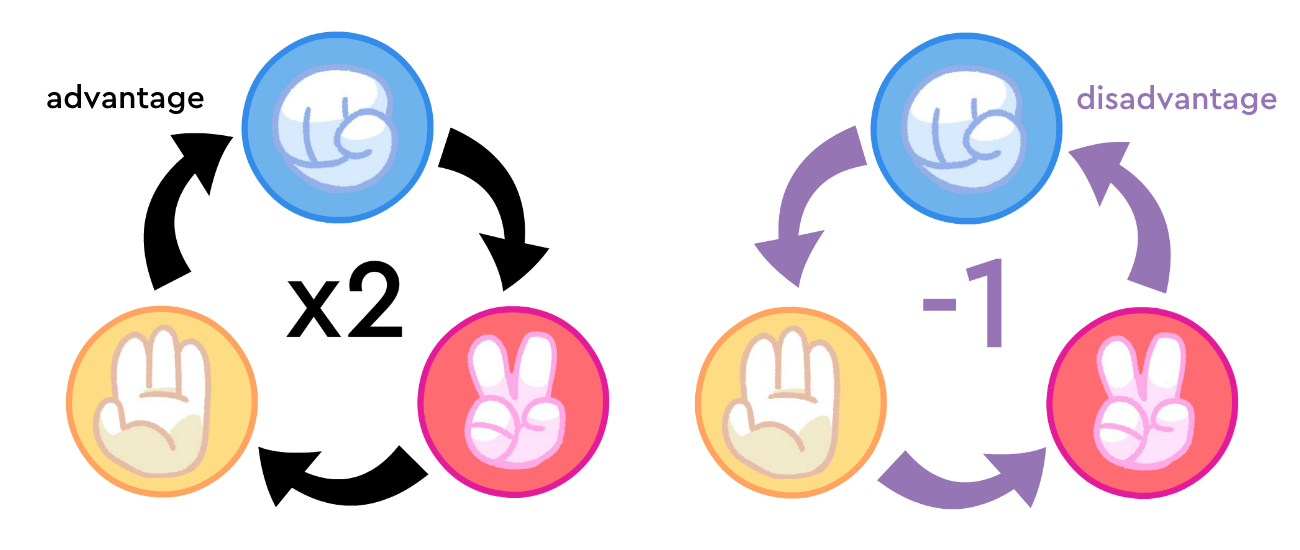 - Rock is x2 Power against scissors, and has -1 Power against Paper